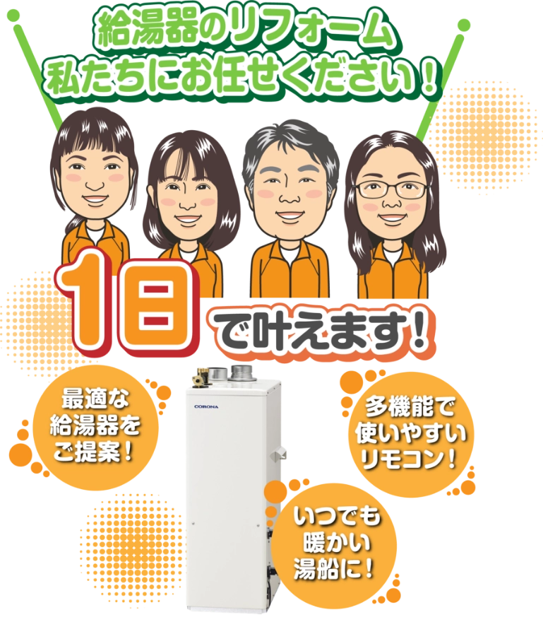 既存給湯器撤去・新規給湯器取り付け・既存給湯器処分・諸経費等の